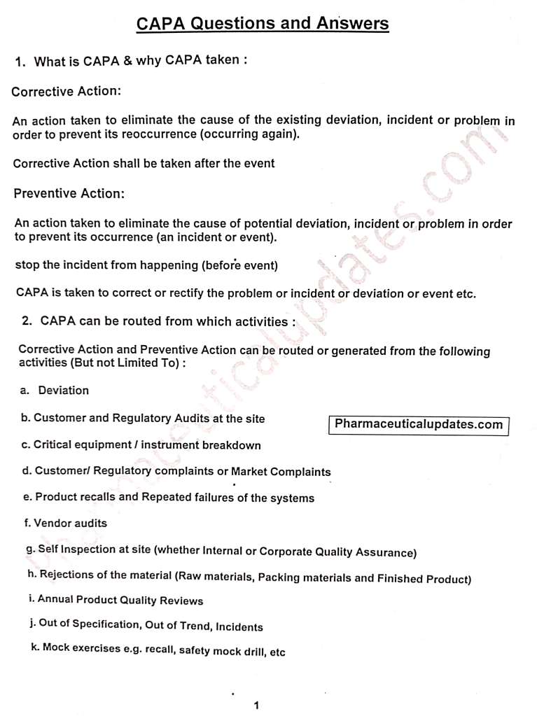 Below are some useful questions and answers related to Corrective action and preventive action which will be useful for the persons those who are working in pharmaceutical industry….