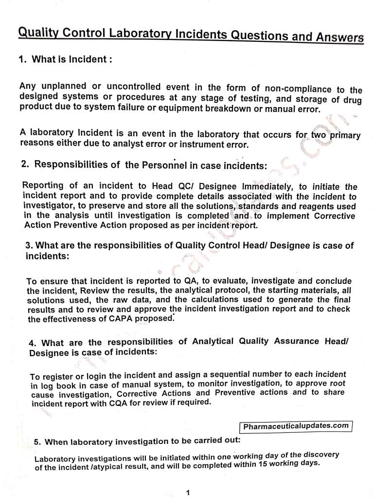 Below are some useful questions and answers related to Laboratory incidents which will be useful for the persons those who are working in pharmaceutical & other contract Laboratories….