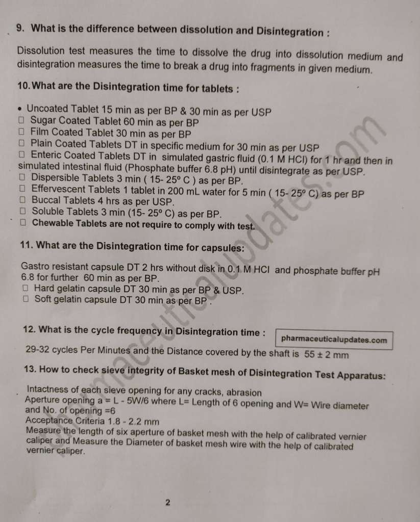 Hi in this Topic I have provided some questions and answers of Disintegration Test Apparatus which will be useful to freshers as well as experience personnel to gain some knowledge. Always i have tried to provide good and quality contents for my viewers or readers or followers. So pl read and provide your feedback