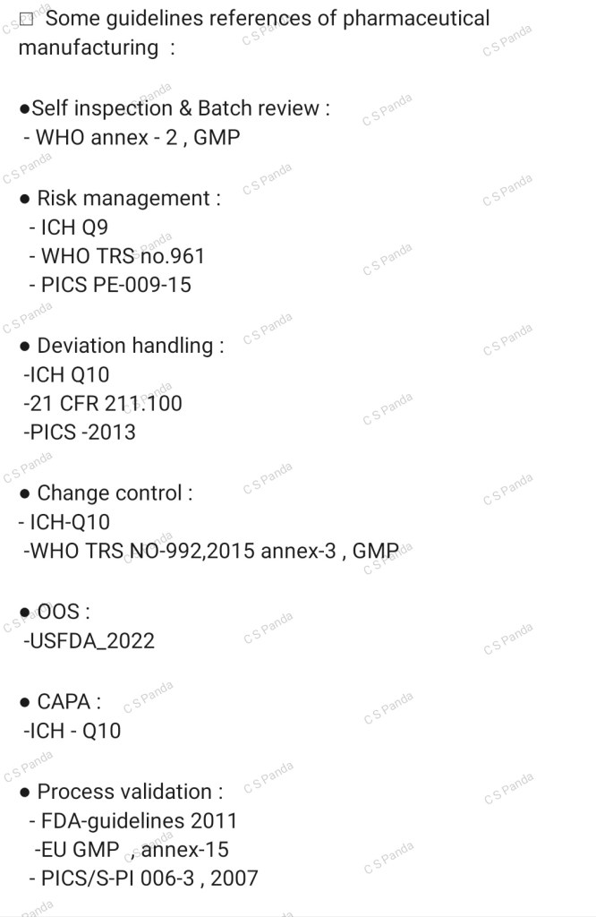 Some useful guideline reference for Pharmaceutical industry but not limited to….